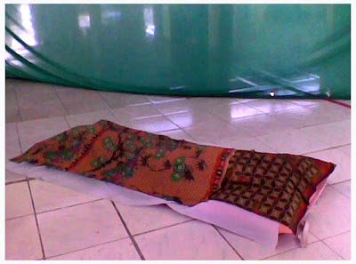 Then, she was taken inside the Mosque, and the Hadji and Imam went to pray for her. She was all wrapped in cloth, white cloth inside then batik outside.