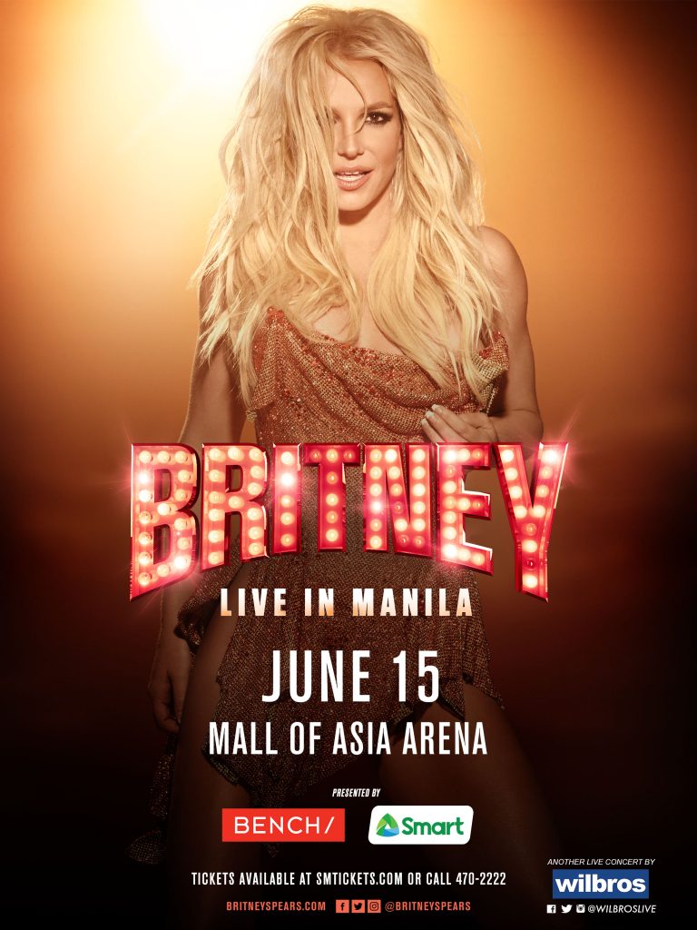 Tickets to Britney Spears Live in Manila will be on-sale beginning April 5 at 10AM. Book online at SMTickets.com or call 470-2222. Presented by Smart, Bench and Wilbros Live.