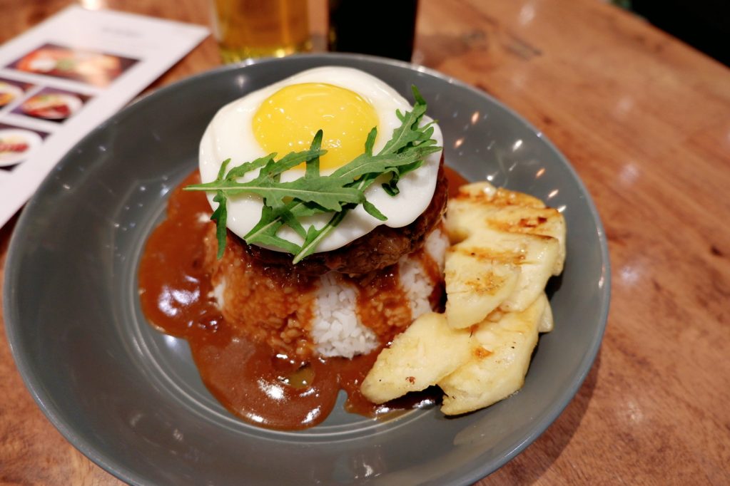And the Loco Moco (Php425) which is a grilled USDA burger steak,  topped with caramelized onions,  sunny side up egg and rum gravy served with jasmine rice and grilled pineapple.