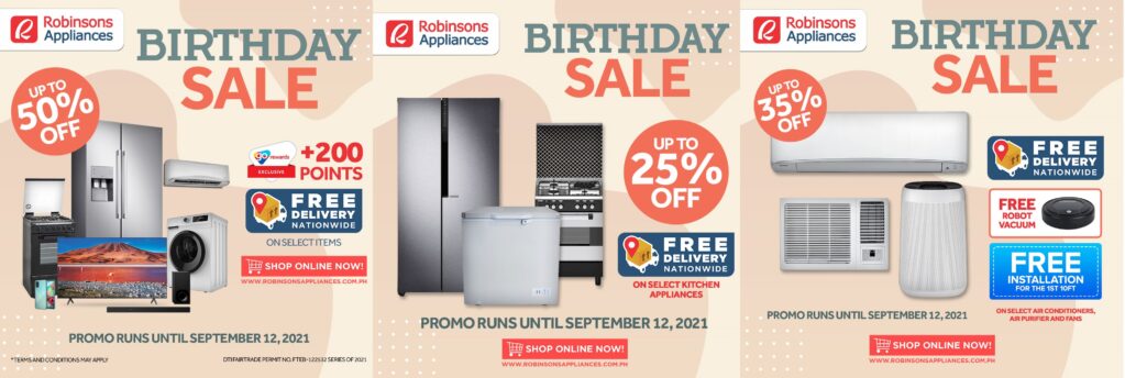 GET UP TO to 25% discount on select items, FREE SHIPPING at Robinsons Appliances Birthday Sale WEBSITE ONLY until September 12, 2021!