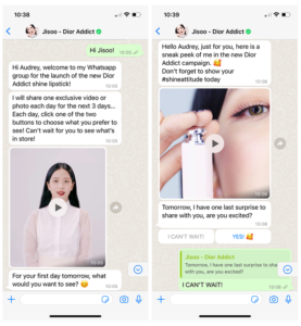 The campaign was managed through Infobip’s WhatsApp Business solution, enabling Dior to build a series of automated conversations and journeys as Jisoo with the help of chatbots. The rich channel means communication included images, videos, files, web links, audio files and buttons to bring messages to life and keep customers engaged.
